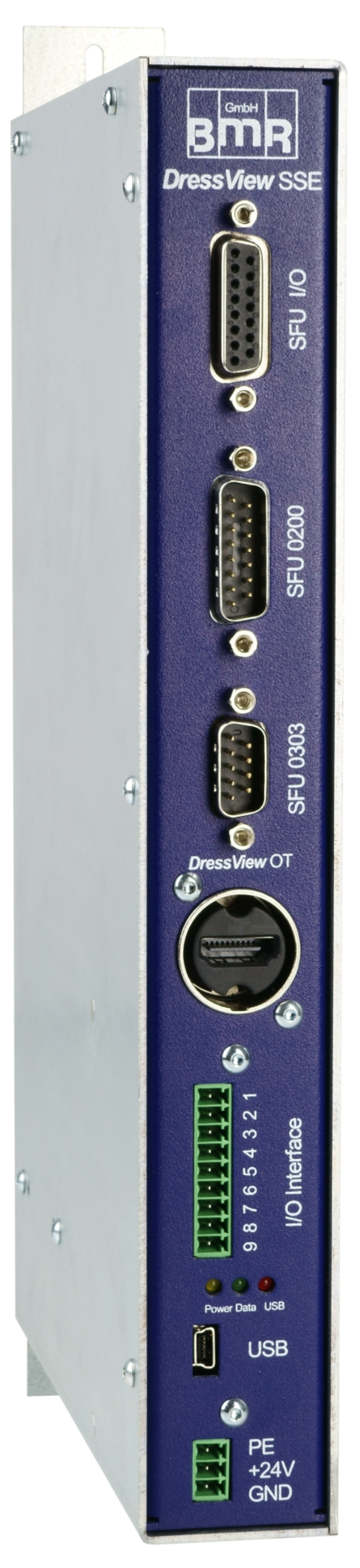 The operating terminal can be mounted either via a VESA mount on your machine, or an arm or as a handy desktop unit on a horizontal surface. Belonging to the operating terminal is the DressView ® SSE cabinet unit. This provides the voltage supply and all inputs and outputs. In addition, it provides a USB interface to the required BMR converters.