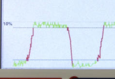 Field Test: This was a test which was performed in an industrial process. The raising strokes represent a forward feeding of 1 micron. As you can see the repeatability in this test, despite the fast working speed is very high, thanks to our high resolution. In this test a 42mm spindle with a diamondwheel was used to dress a CBN-wheel. The dressing thereby held under high pressure coolant, which was been calibrated out but through our system. Also you can see the functionality of our two individual ajustable levels. The lower one is the triggerlevel, which detects the contact with your tool an the upper one is the workinglevel, which helps you to qualify your resulting surface.