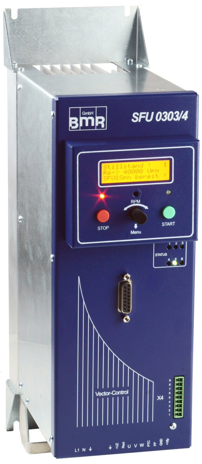 ® GmbH SFU 0200X 1000 rpm READY RPM = 0 RPM OK > 100% 100  50 10 LOAD % STATUS START STOP ® GmbH SFU 0200X config wheel ESC SET START STOP MENU ® GmbH SFU 0200X