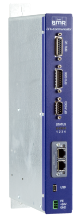 Gateway zur einfachen Anbindung der BMR-Umrichter an übergeordnete Maschinensteuerungen Unterstützt nahezu alle Industrie- und Feldbussysteme Konzipiert für Anwendungen im Bereich Industrie 4.0 Schnittstelle für eine modulare, intelligente und kompakte Systemlösung Verfügbar als SSE-Bauform in einem schmalen, robusten Metallgehäuse Modularer Aufbau des SFU Communicator (Steckmodule für versch. Bussysteme) Unterstützt wird aktuell Profibus. Auf Anfrage können auch EtherCAT, Common Ethernet, EtherNet / IP, DeviceNet, Profinet- IRT, BACnet/IP, CC-Link IE Field, CC-Link, Modbus TCP und Powerlink implementiert werden Nachrüstbar und kompatibel zu den bestehenden BMR-Umrichtern